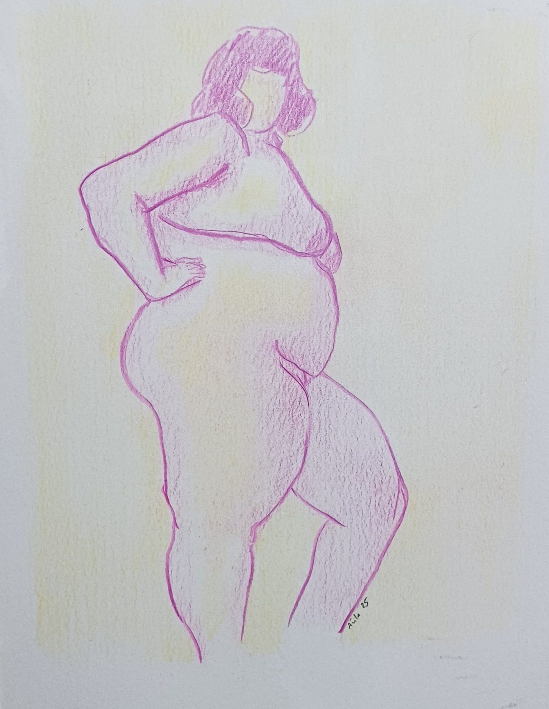 ÁNGEL ÁVILA “MUJER DE PIE" DIBUJO A COLOR