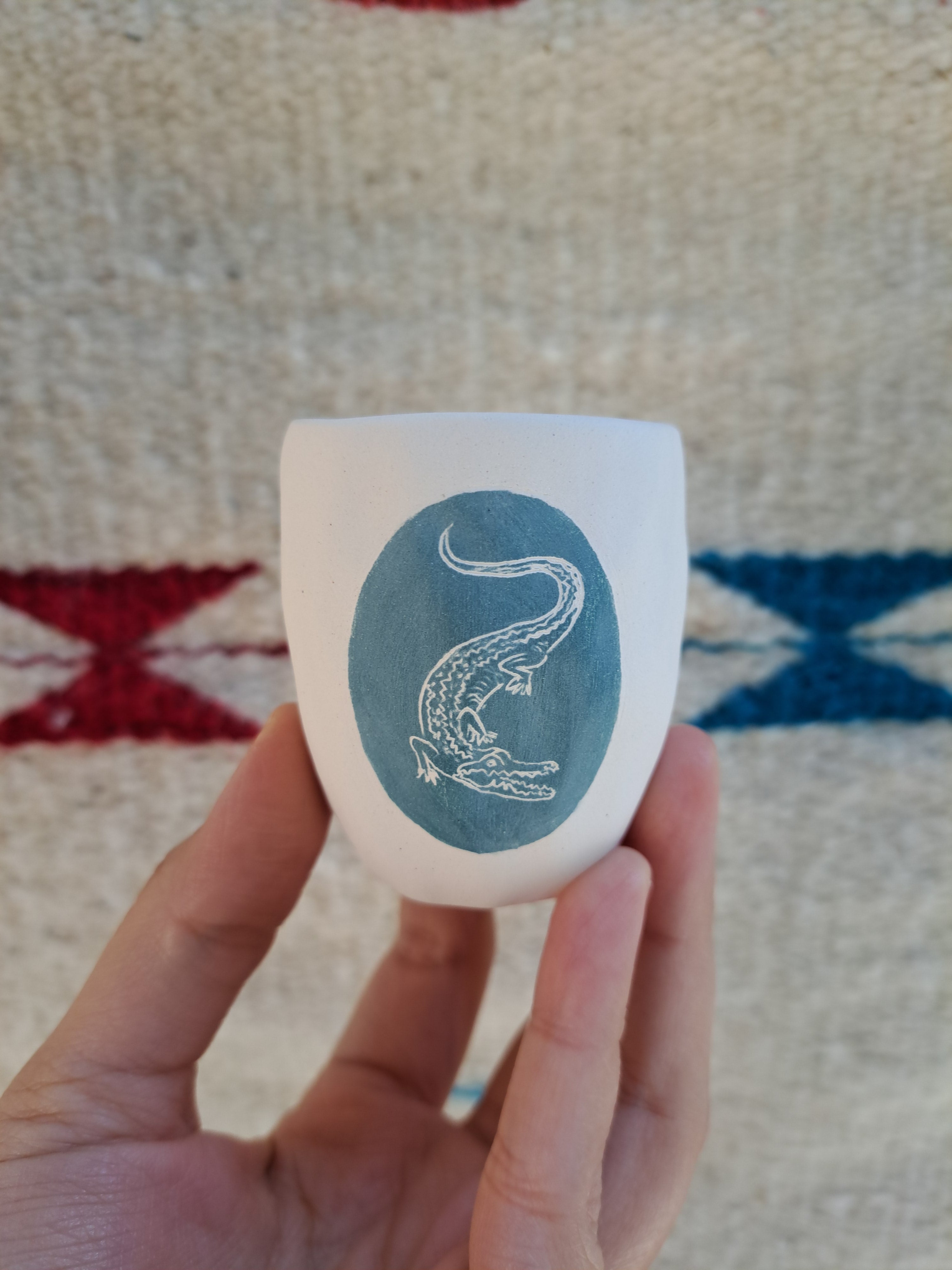 Inspiradas un poco en los corales de tubo del fondo marino, el material cerámico utilizado es una pasta blanca (barro blanco) cocida a temperatura media, con un esmaltado/vidriado interno el cual sirve como una barrera a la filtración, cuenta con un exterior de textura áspera pintado con engobes y esgrafiado a mano con temas de la cultura popular mexicana como cráneos y gallos.