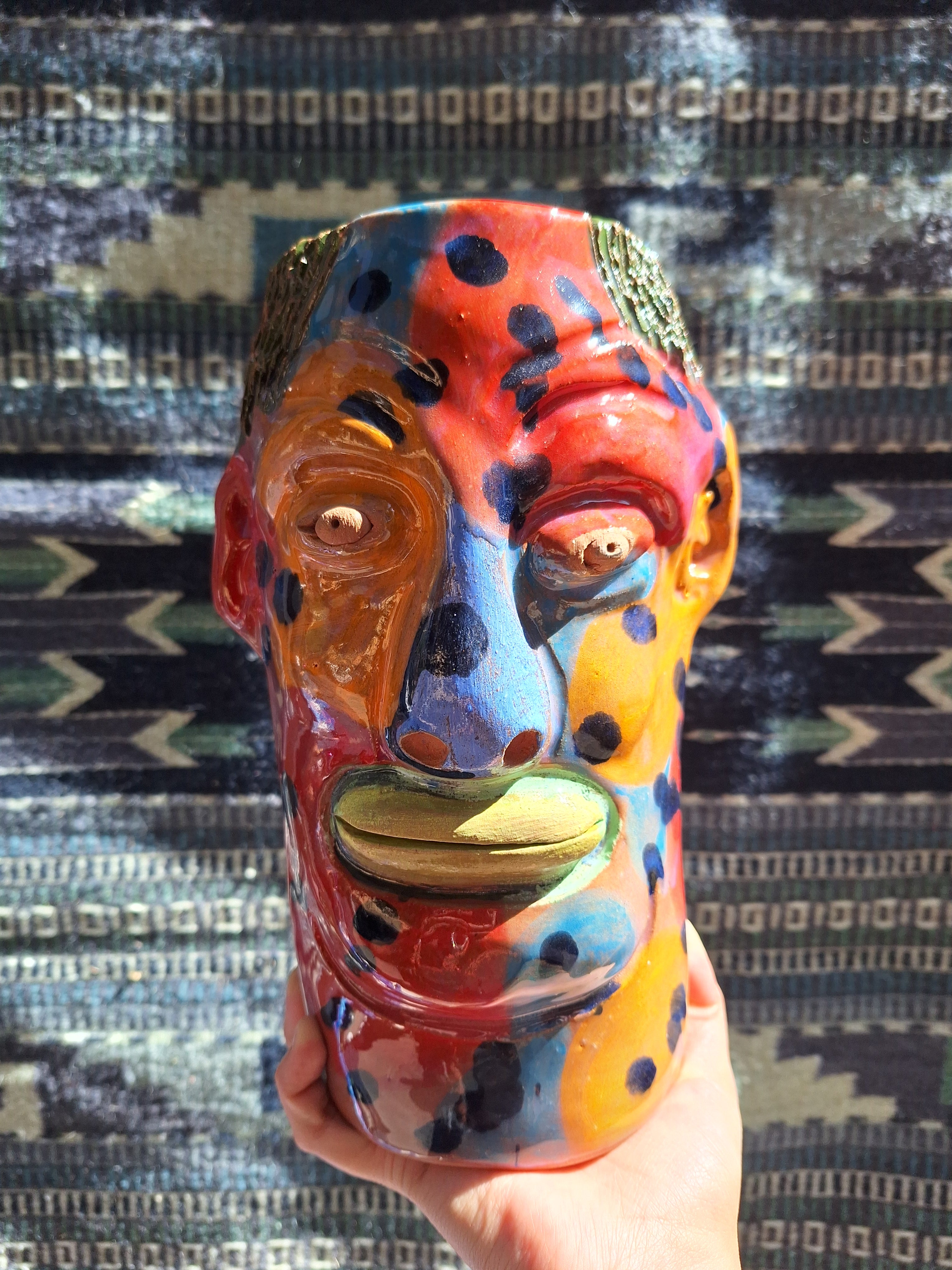 PERSONAJES ESMALTADOS GRANDES / CARA DE PLANTA / MACETAS POLICROMADAS
