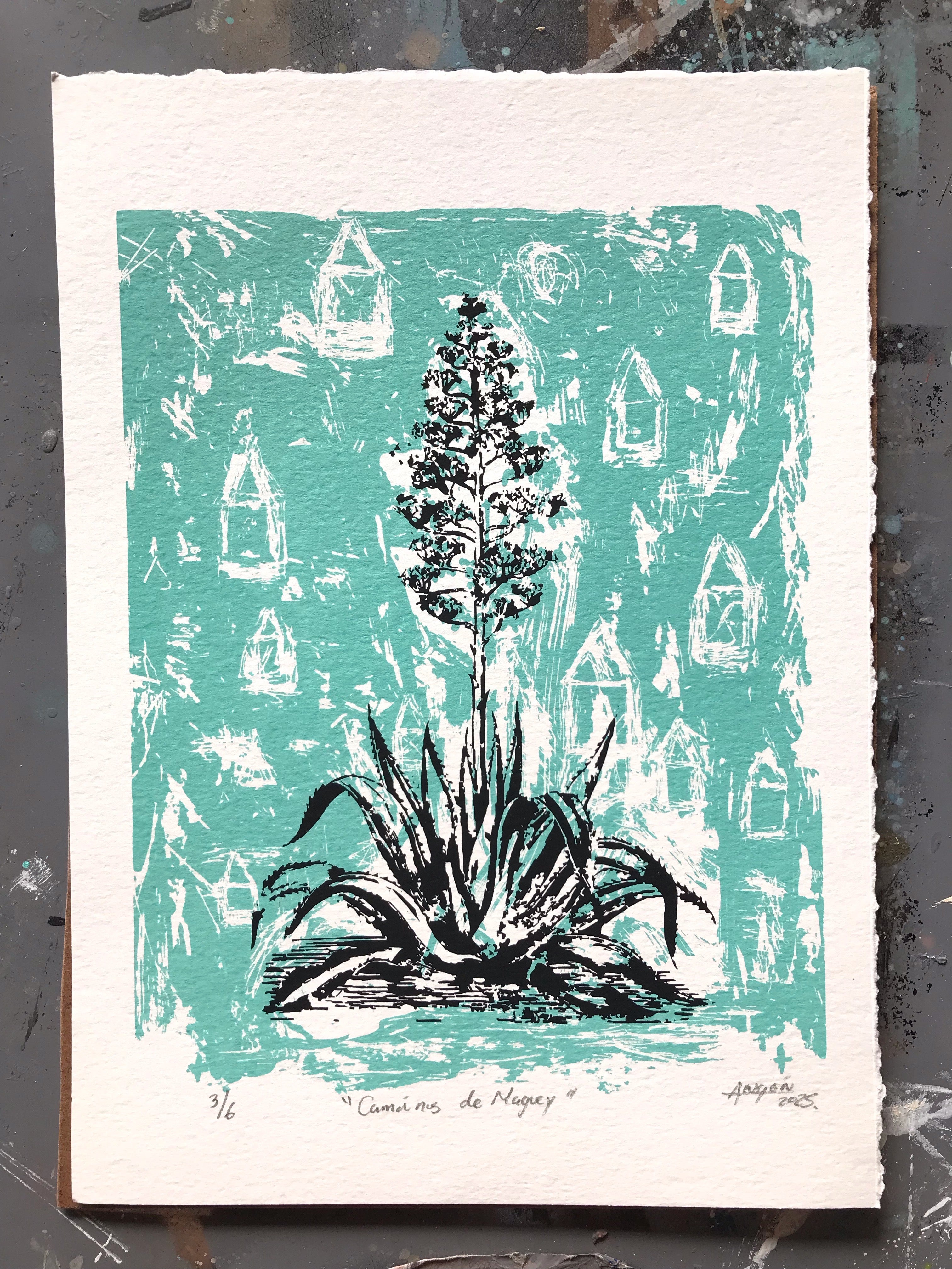 ANGÓN “CAMINOS DE MAGUEY” SERIGRAFÍA SOBRE PAPEL ALGODÓN