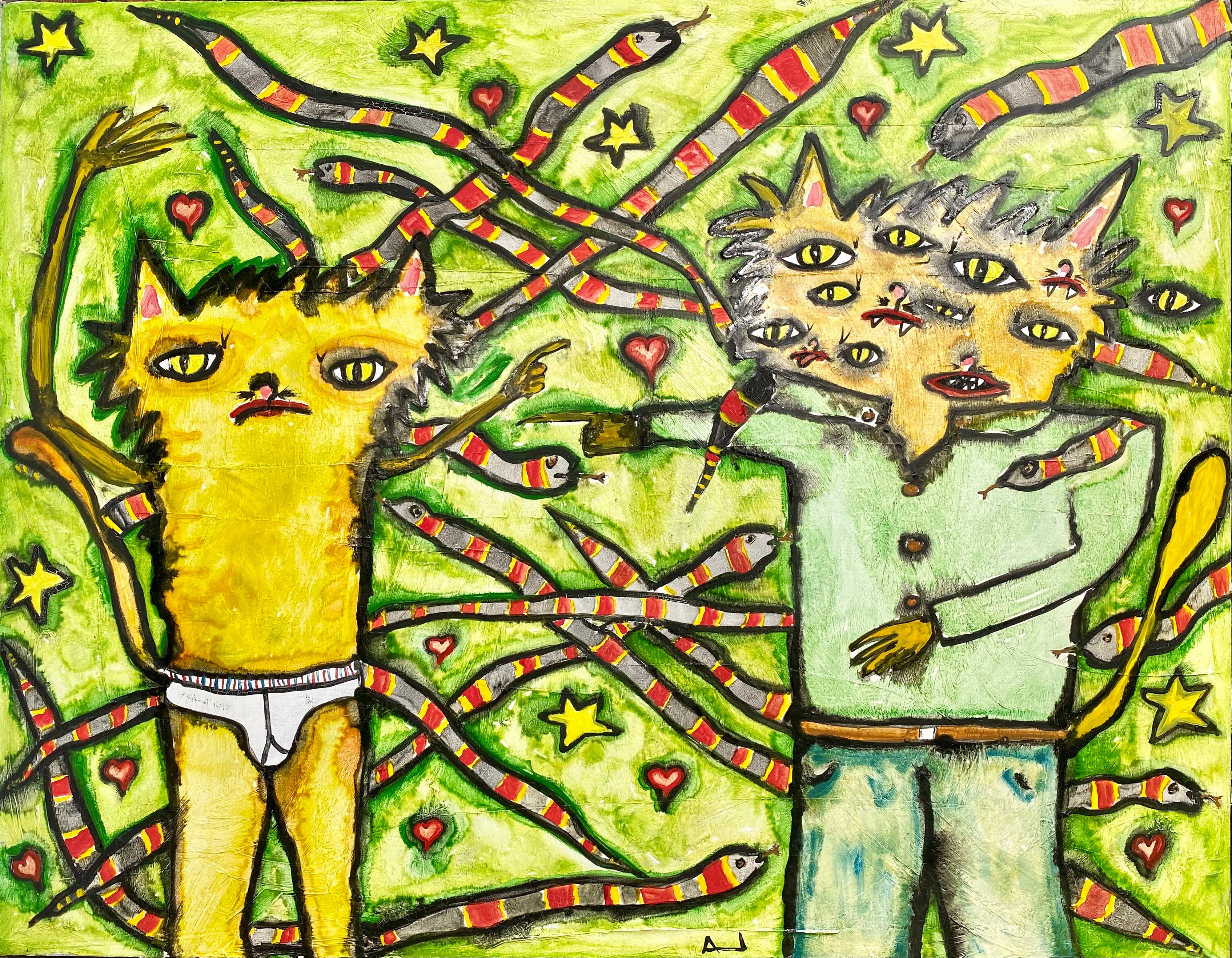 ENRIQUE ARNAUD BLUM "GATOS CON TRUSA Y SERPIENTES” PINTURA
