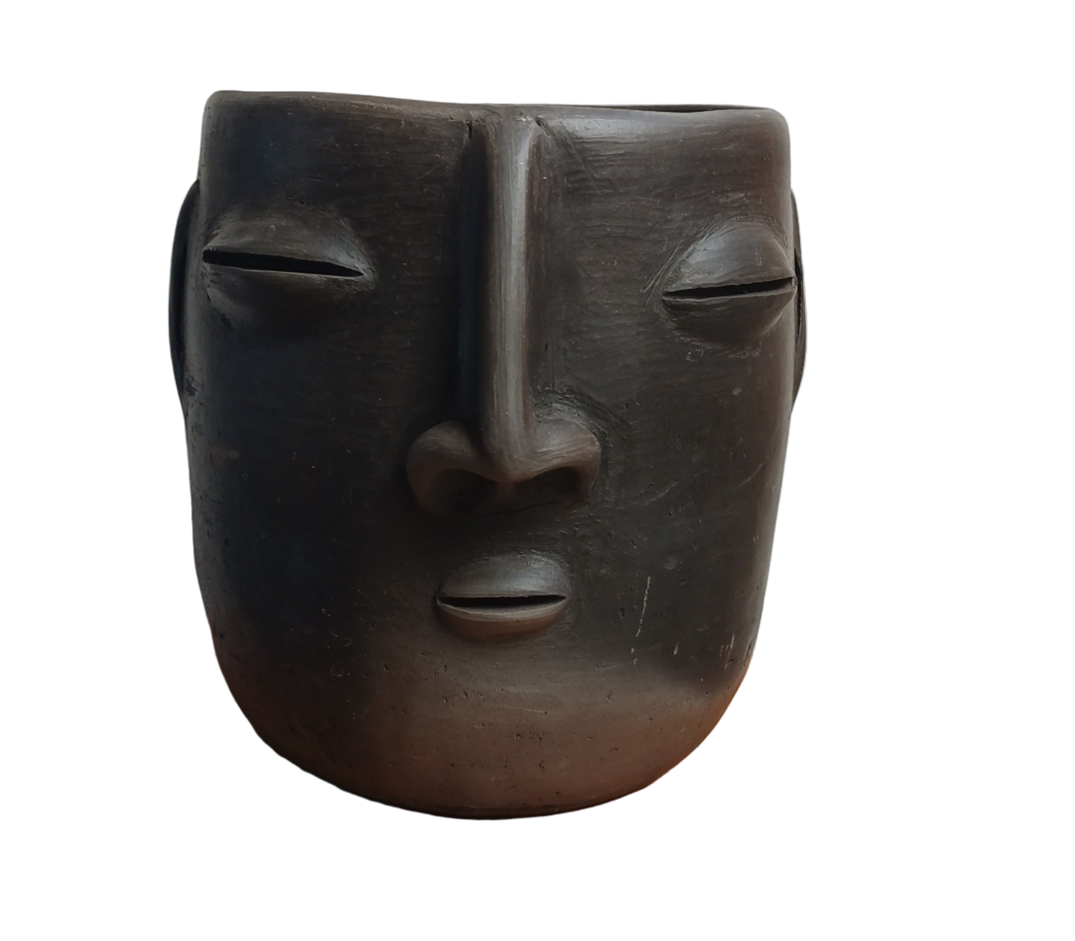 This clay pot, crafted by Ana Martínez using the traditional Atzompa technique, is a unique piece with a beautiful hand-engraved face. Add a special touch to your plants and show your appreciation for Mexican craftsmanship with this 20 cm pot.