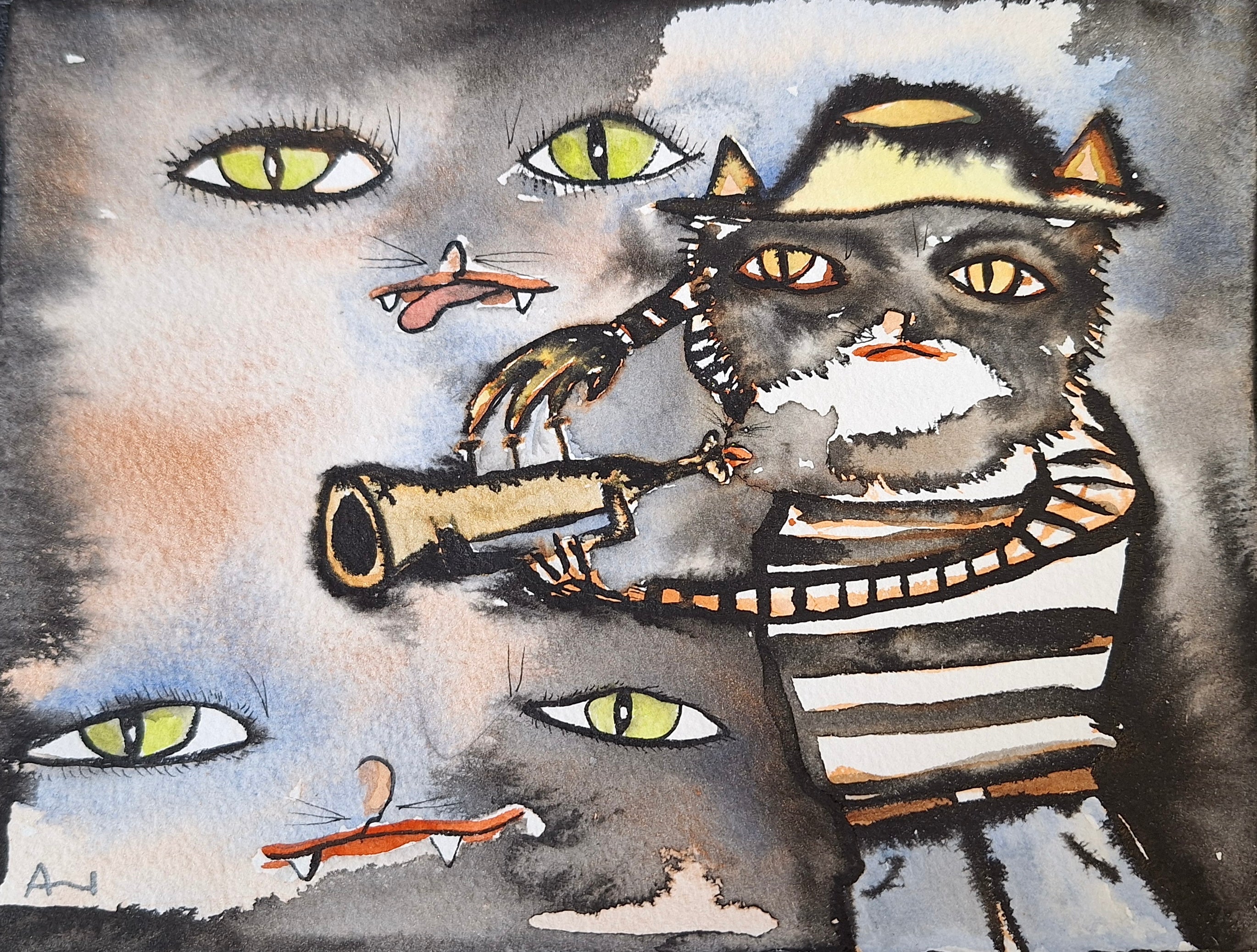 ENRIQUE ARNAUD "TOCANDO EN LA OSCURIDAD” ACUARELA