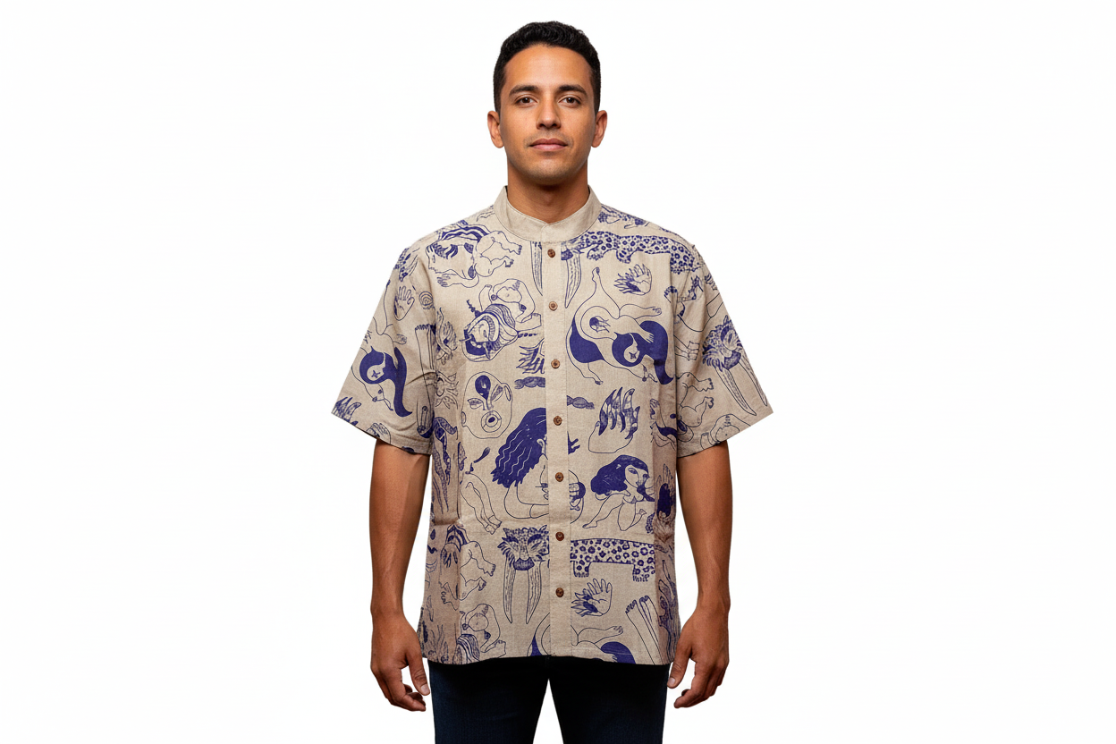 HOMBRE NECIO CAMISA/SERIGRAFÍA LINO Y ALGODÓN VARIOS COLORES