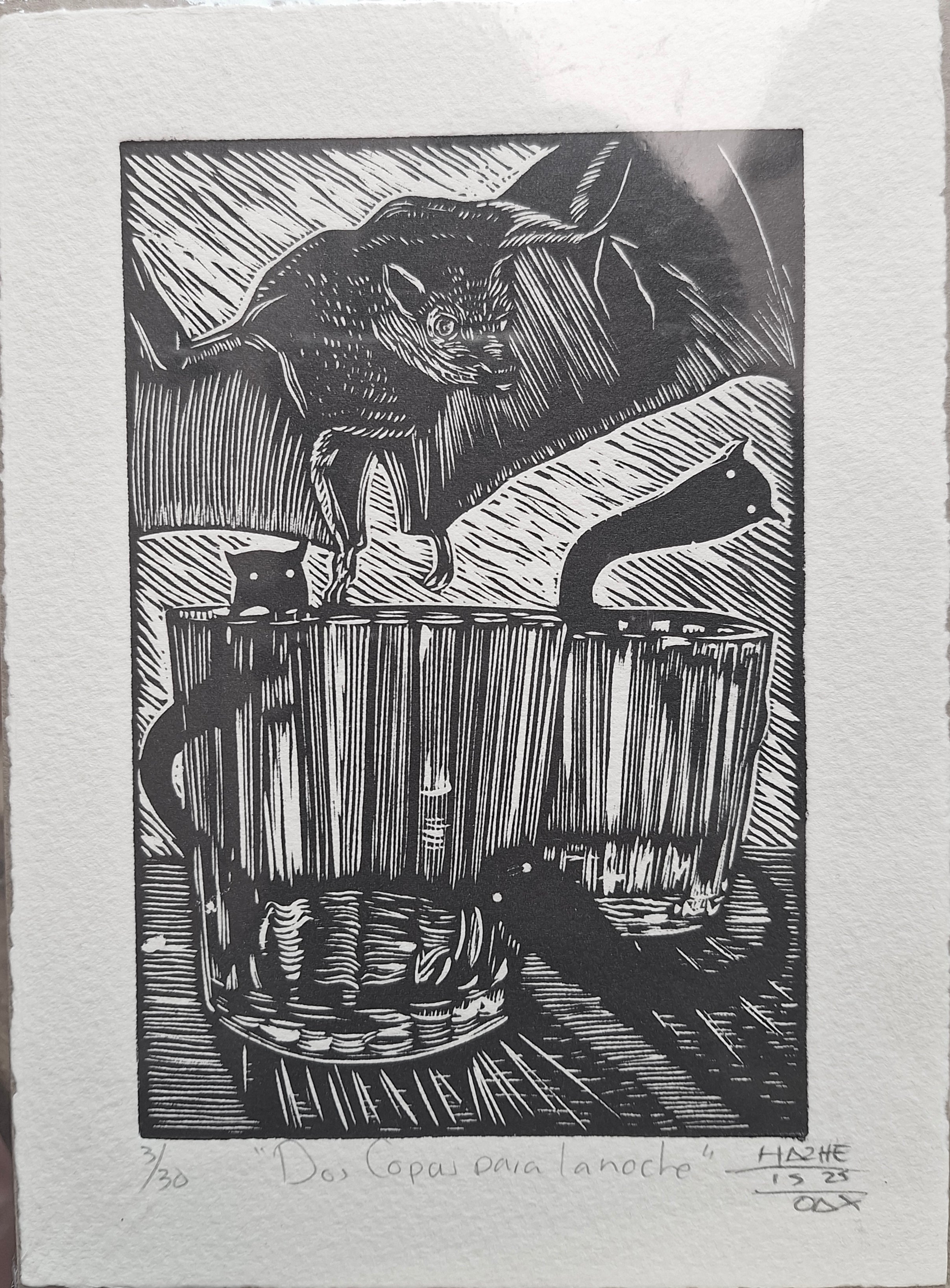 HAZHE IS ! "DOS COPAS PARA LA NOCHE” GRABADO